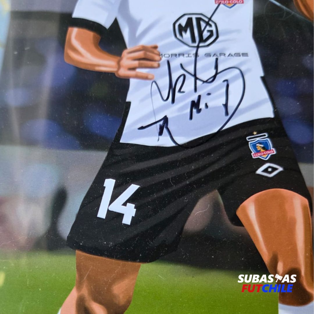 Caricatura enmarcada de Matías Fernández. Firmada por el ex futbolista. Caricatura realizada por el artista chileno Jorge Mora.