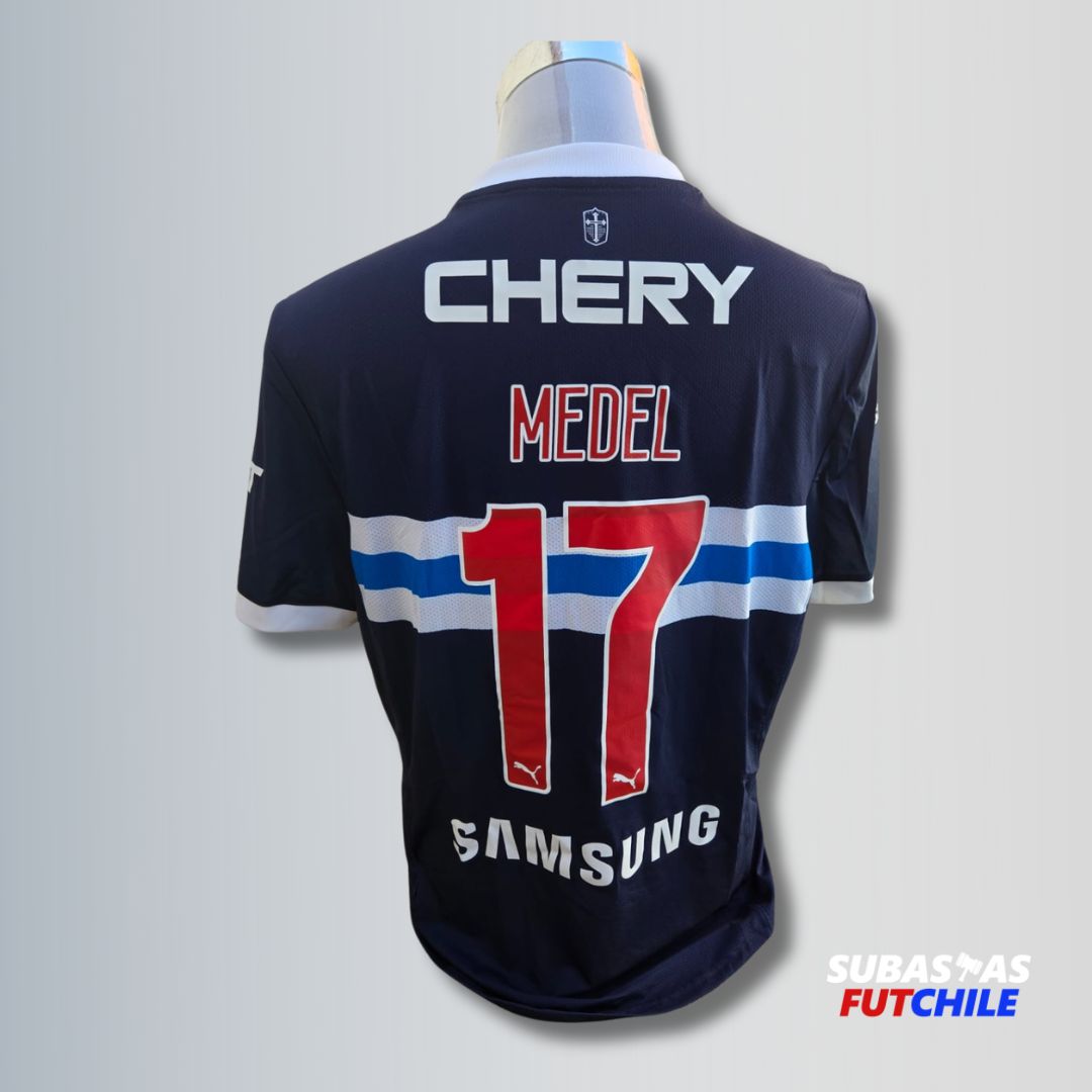 Camiseta utilería de Universidad Católica, temporada 2025, versión visita. Dorsal #17 del histórico defensa Gary Medel. Talla L. Con parche oficial del campeonato nacional. De colección.