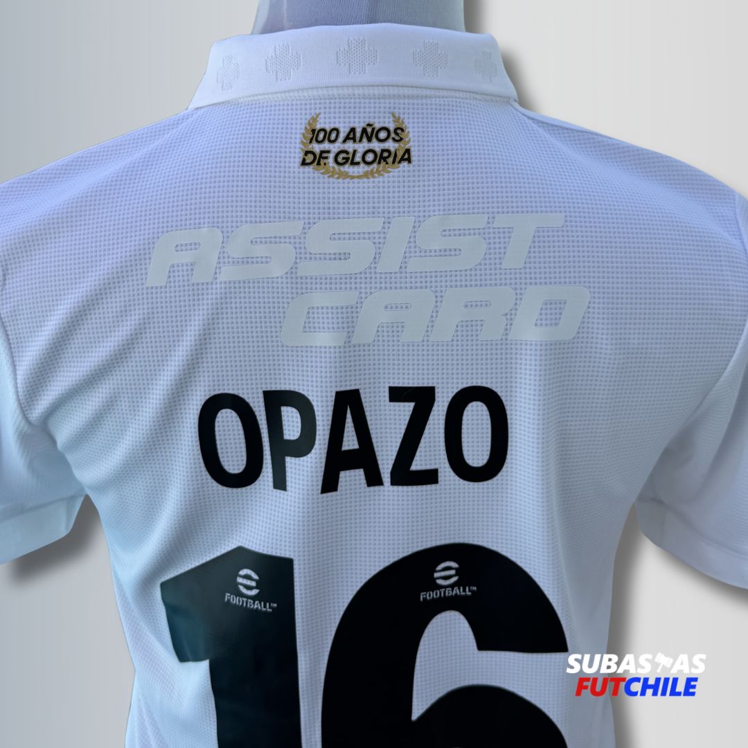Camiseta utilería de Colo-Colo para la temporada 2025, año de su Centenario. Modelo utilizado versus Coquimbo Unido el 26 de abril de 2025. Dorsal #16 de Óscar Opazo. Talla M. Con parche oficial del campeonato nacional y escudo de campeón. De colección.