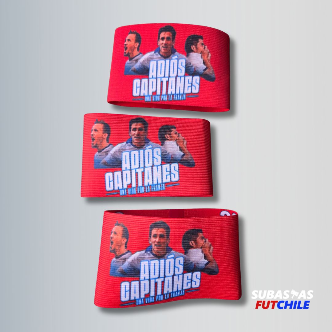 Jinetas usadas por los tres capitanes del partido de despedida "Adiós Capitanes" de Universidad Católica: José Pedro Fuenzalida, Milovan Mirosevic y Cristián Álvarez.