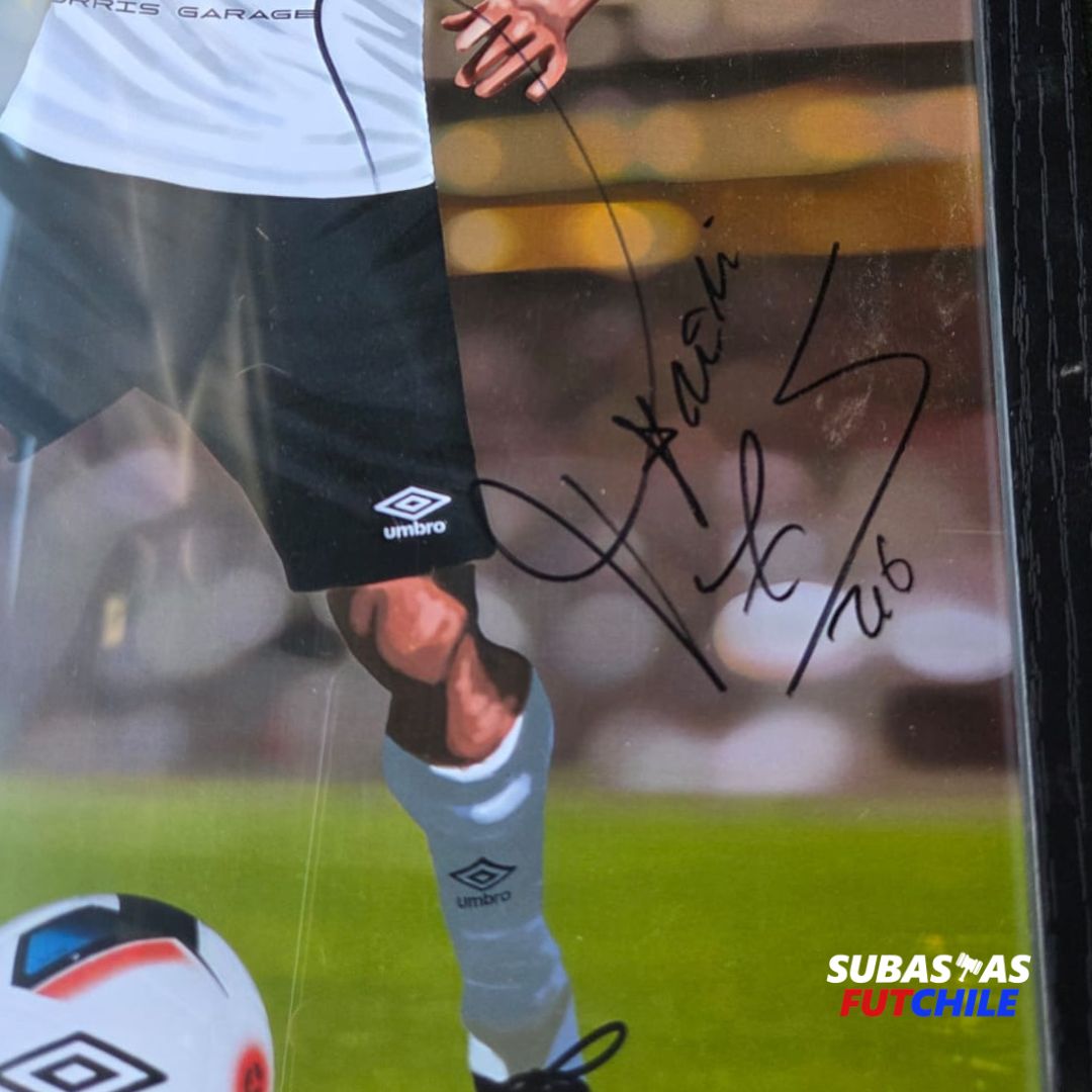 Caricatura enmarcada de Esteban Paredes. Firmada por el goleador del fútbol chileno. Realizada por el caricaturista chileno Jorge Mora.