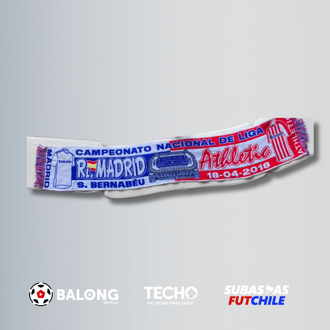 Bufanda del partido entre Real Madrid vs Atlético de Madrid el 18 de abril de 2018, en el estadio Santiago Bernabéu. De colección.