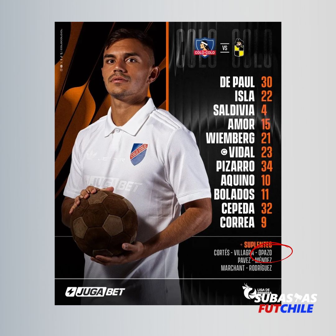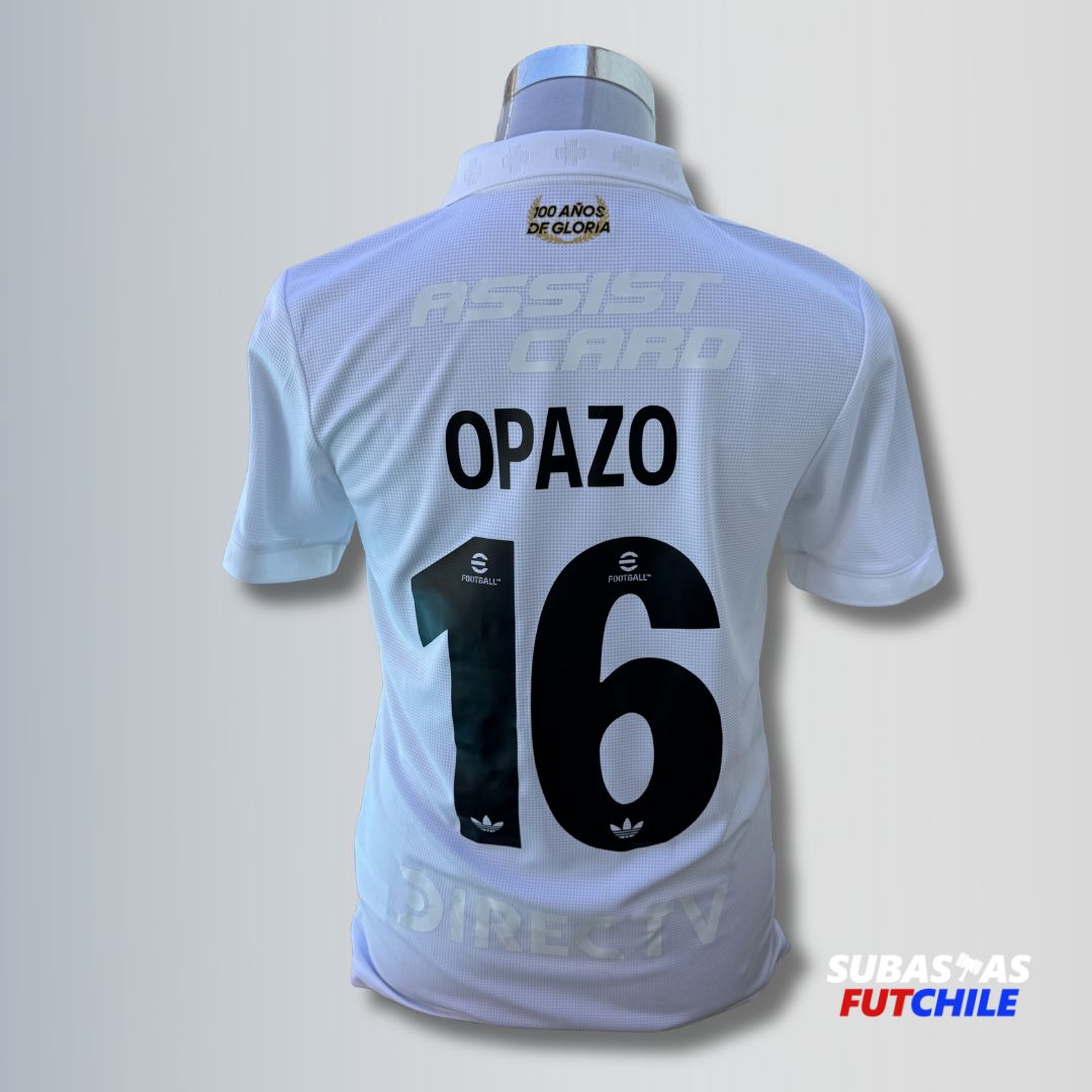 Camiseta utilería de Colo-Colo para la temporada 2025, año de su Centenario. Modelo utilizado versus Coquimbo Unido el 26 de abril de 2025. Dorsal #16 de Óscar Opazo. Talla M. Con parche oficial del campeonato nacional y escudo de campeón. De colección.