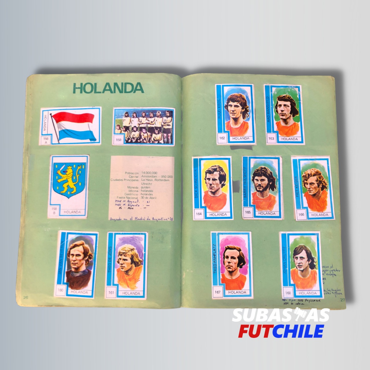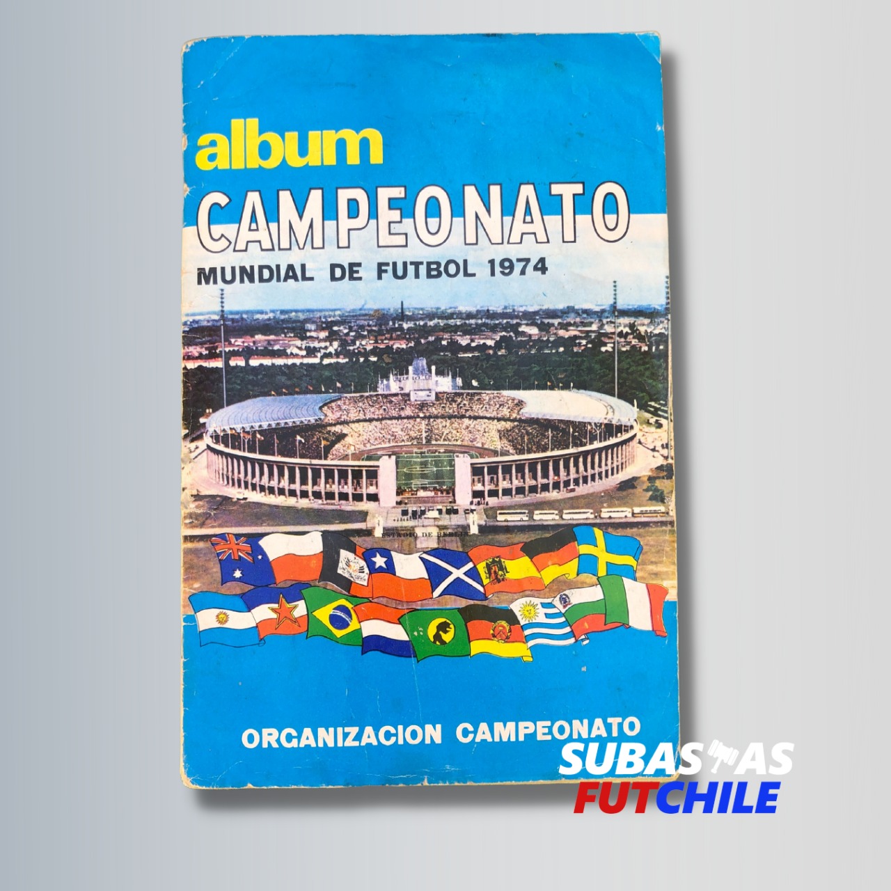 Álbum del Campeonato Mundial de Fútbol 1974 completo. Todas sus láminas en excelente estado. Incluye todos los equipos participantes de ese torneo y la "Selección Ideal de todos los tiempos".
