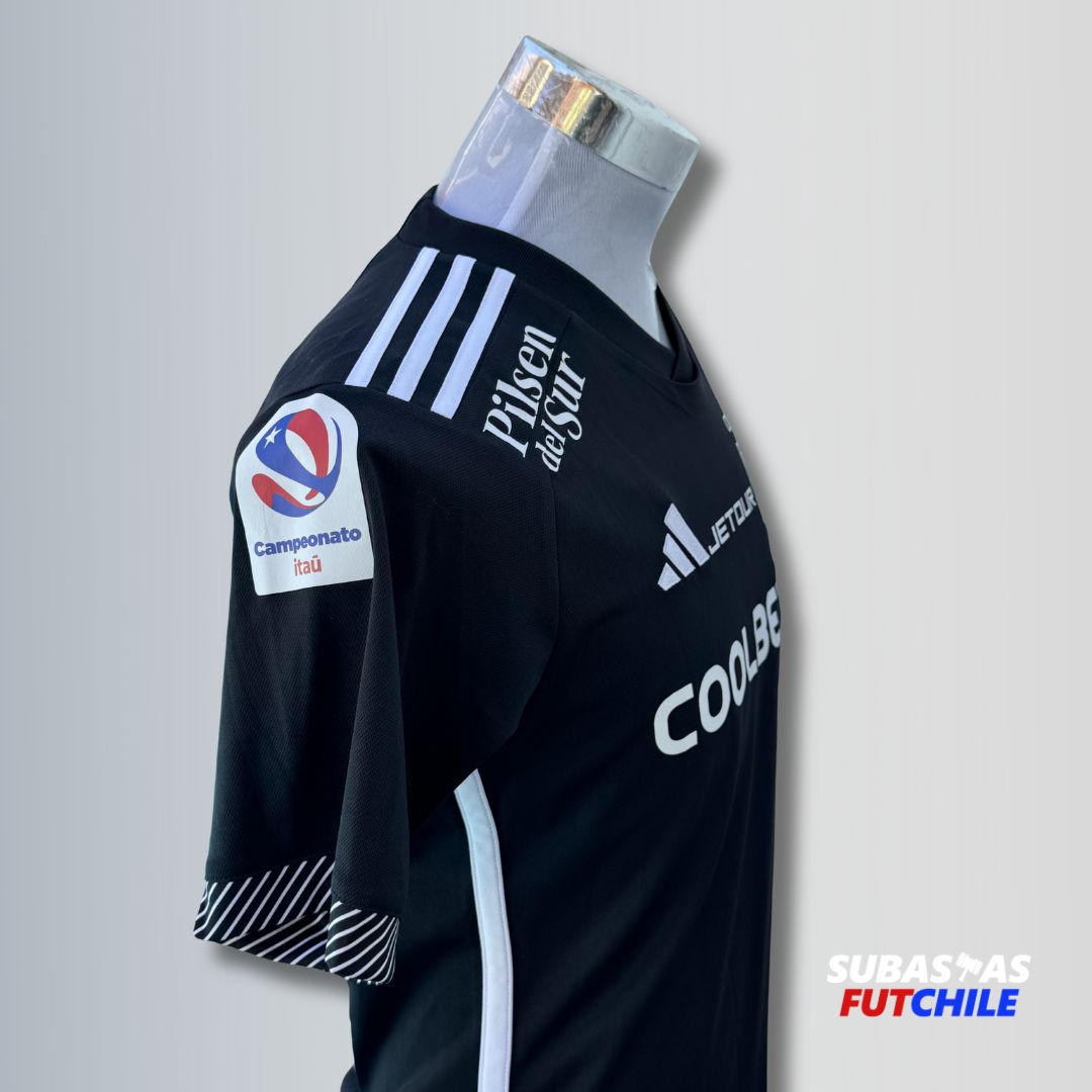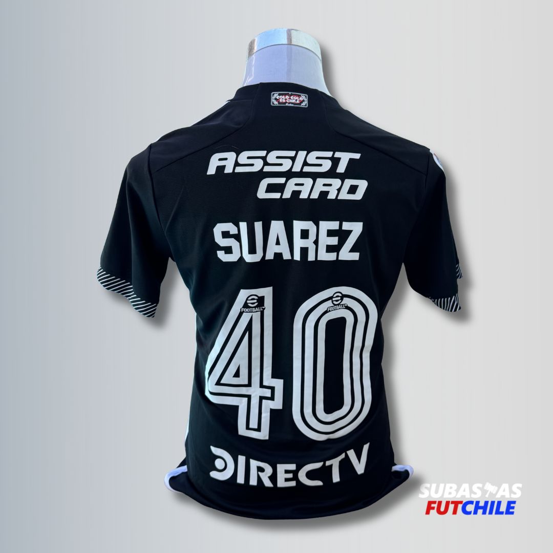 Camiseta utilería de Colo-Colo, versión visita, para la temporada 2024. Dorsal #40 del defensa Nicolás Suárez. Con parche oficial del campeonato nacional. Con parche oficial del campeonato.