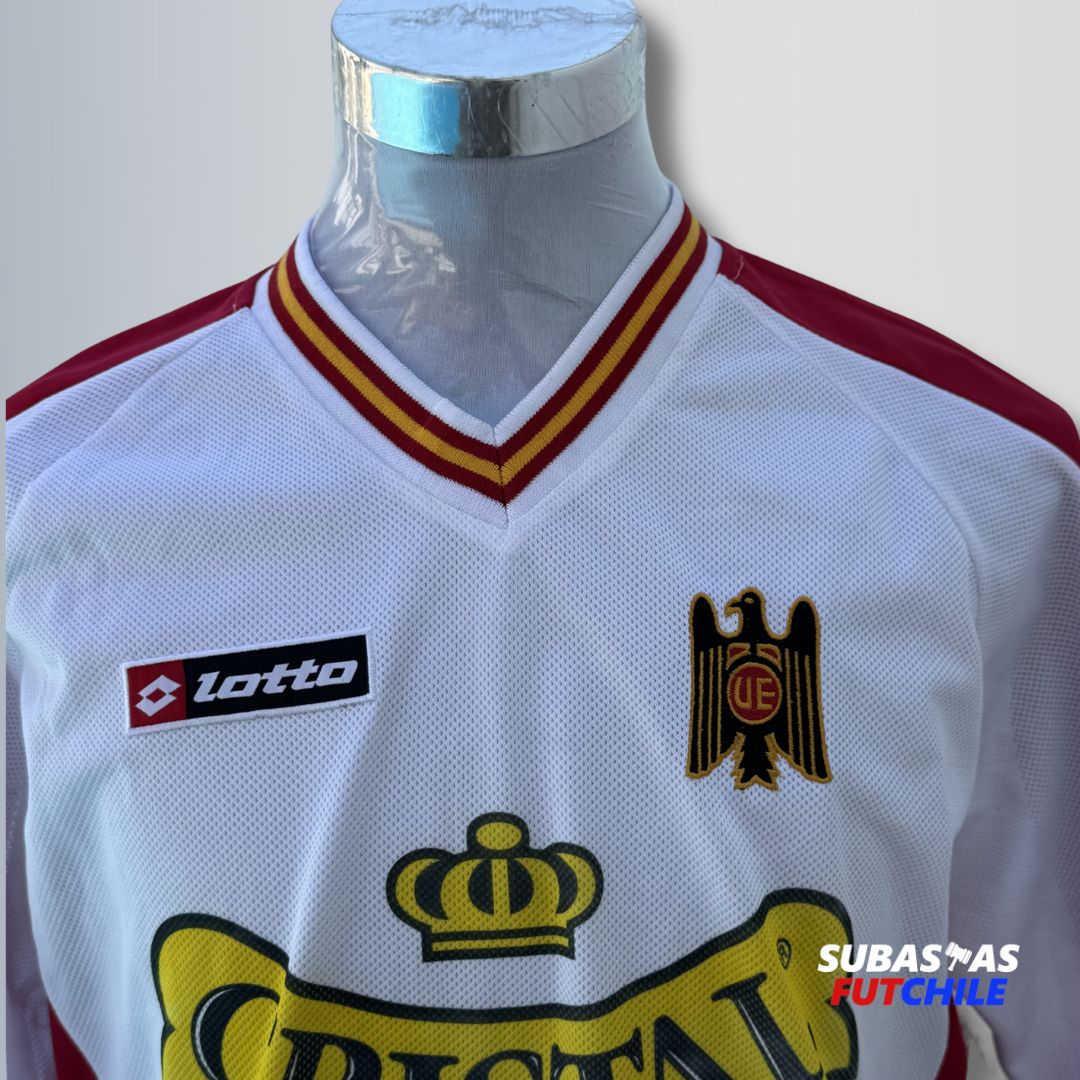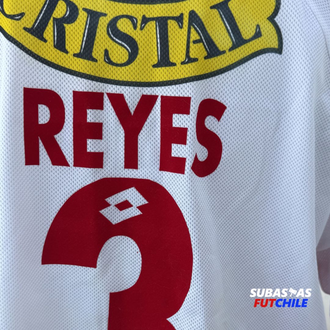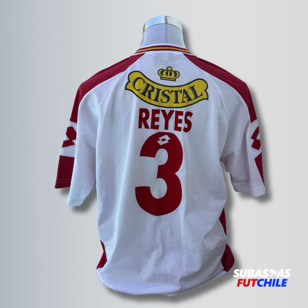 Camiseta de Unión Española para la temporada 2003. Usada en cancha por el histórico central chileno Pedro Reyes, dorsal #3. Talla XL. Marca Lotto.